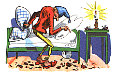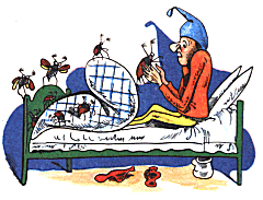 in der spitzen Zipfelmütze;