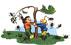 schütteln sie vom Baum herunter.